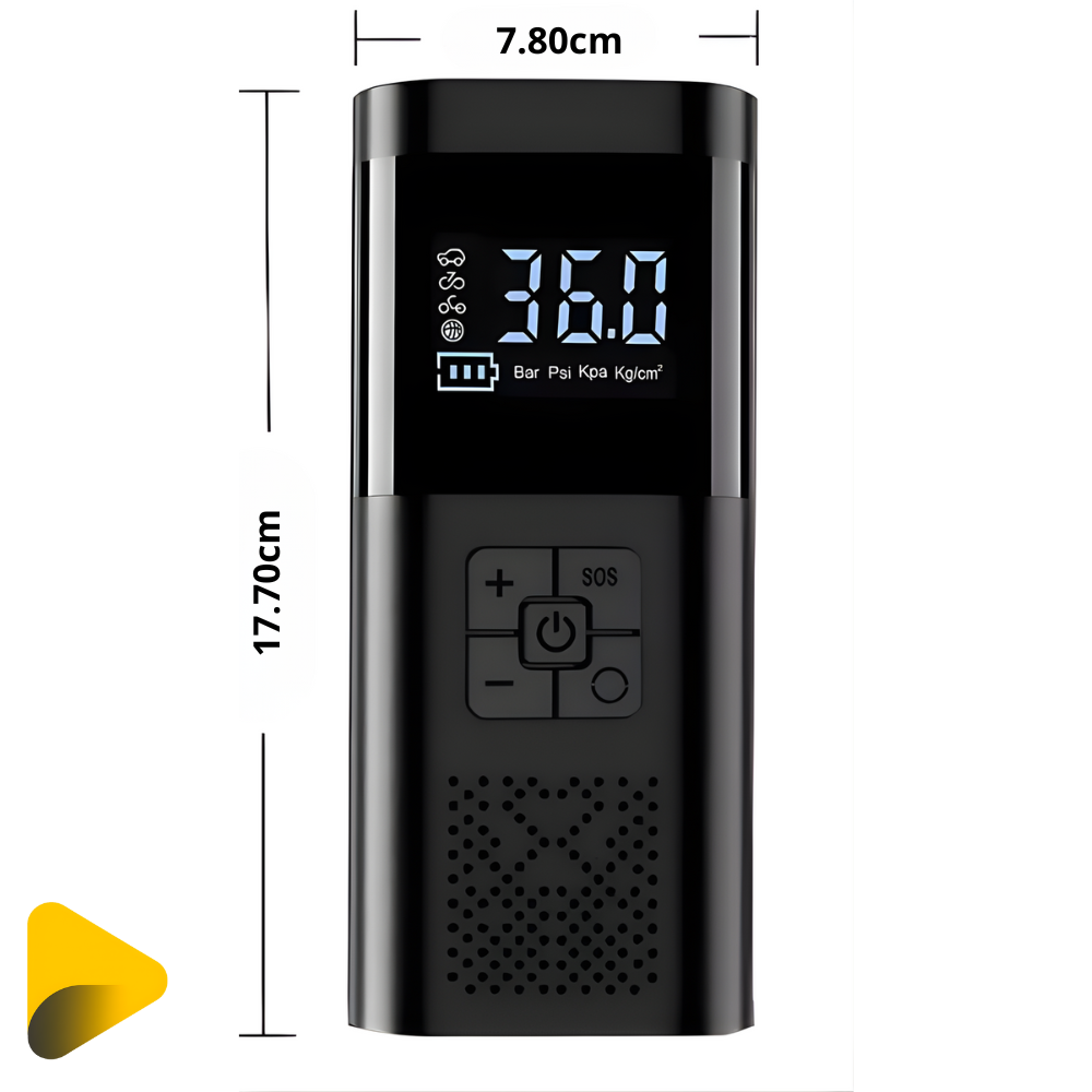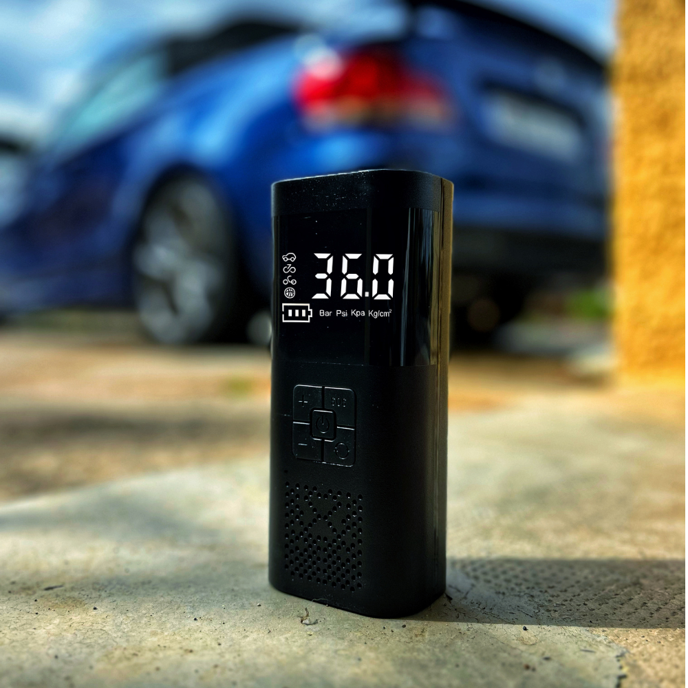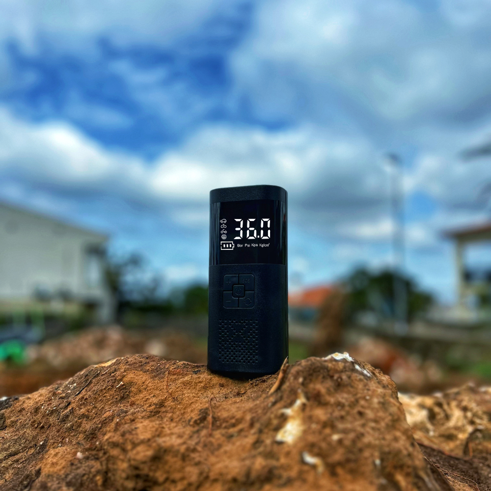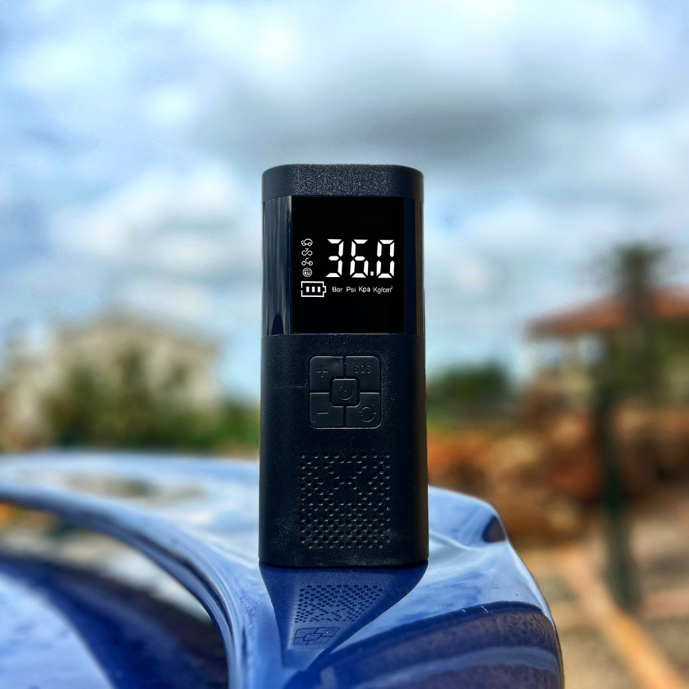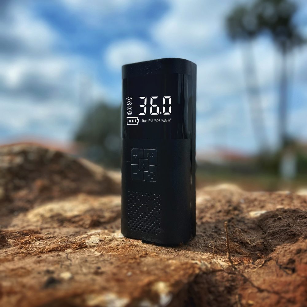 Compresor de aire portátil, seguro y respetuoso con el medio ambiente, fabricado sin químicos de alta preocupación. Diseñado para ofrecer un inflado rápido, preciso y cómodo en cualquier situación, sin necesidad de conectarlo a una fuente de energía externa.